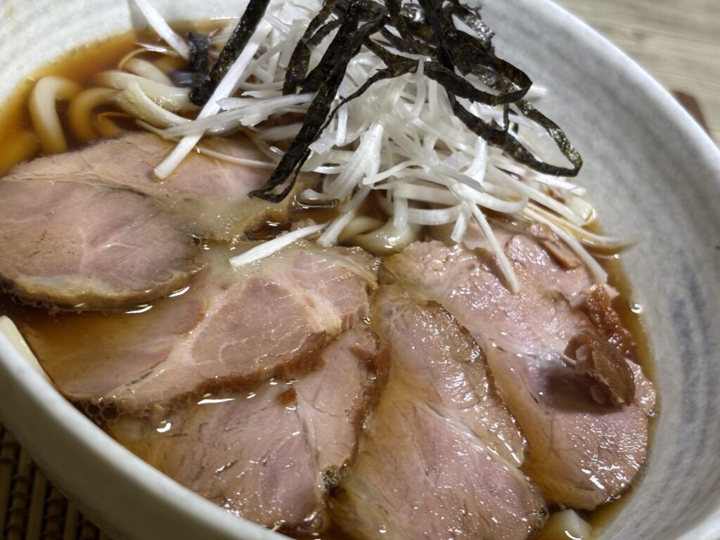 怒られましたよ。だから当時は水だと「水っぽくなるから」ダメなんじゃないかと仮定し、色々に作ってみたおだしでチャレンジしたんですが、どうにも重い。かけうどんってチャチャッと啜るイメージなのに、なんかおつゆが重くて食べにくいんです。つゆの香りもそんなに活きない。そもそもチャーシュー乗っけてますから。寒くなってきたし、肉汁を冷たいうどんで食すと言うのも(iketchは大好きなんですが)みなさんはやりにくいし、だったら「肉うどん」として熱々を食べてもらいたいな、簡単にできないかなと思ったんです。どうする、かけつゆ?