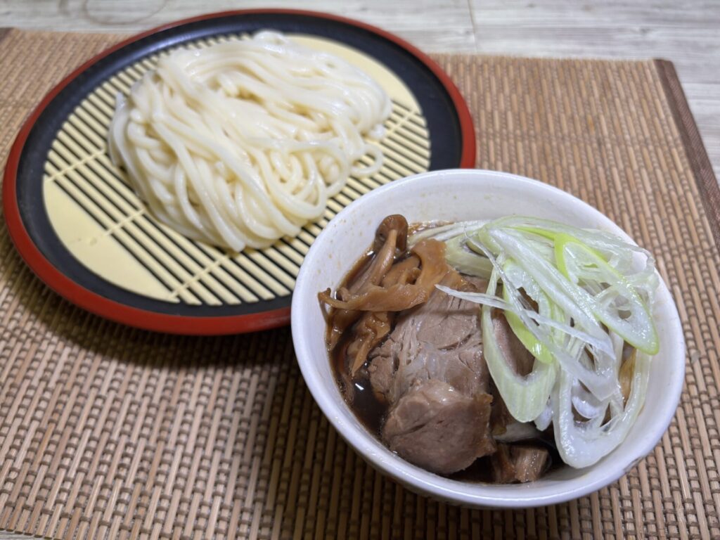 うどんに肉汁つゆを添えて、完成です。これでもかなり工程を抑えたんですが、やはり、家で作るにはハードルが高いですね。まして、自分でうどんをこね、足踏みしたり、かえしを仕込んだり... となるといつ食べられるかわかりません。麺料理って、簡単に食べられるイメージですけど、こんなに複雑だったんです。